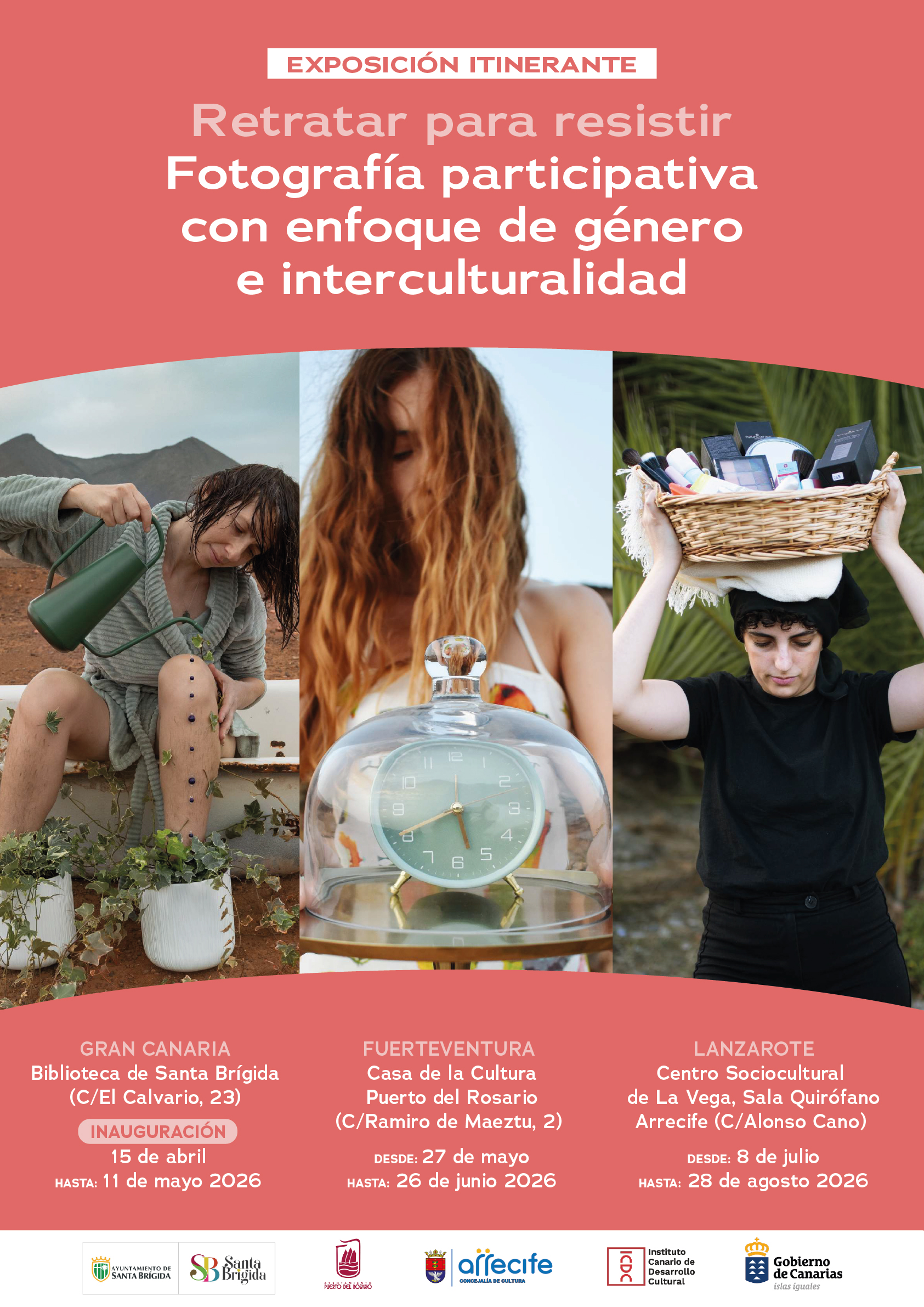 El proyecto ‘Retratar para resistir’ da un paso más en 2026 consolidándose como una iniciativa cultural transformadora que, a través de la fotografía participativa, visibiliza nuevas narrativas desde una perspectiva de género, intercultural y comunitaria en el archipiélago canario. Se propone para 2026 la realización de una exposición itinerante titulada ‘‘RETRATAR PARA RESISTIR’’ que recorrerá diversas islas del archipiélago canario. Esta exposición recoge los resultados de los procesos participativos desarrollados en Gran Canaria, Fuerteventura y Lanzarote, donde mujeres y disidencias de contextos rurales crearon, a través de la fotografía, relatos visuales propios desde una perspectiva interseccional, inclusiva y vinculada a sus territorios. Las imágenes expuestas son fruto de un trabajo colectivo que ha permitido visibilizar experiencias, identidades y realidades diversas, contribuyendo a cuestionar los estereotipos de género y las representaciones hegemónicas en la cultura visual.